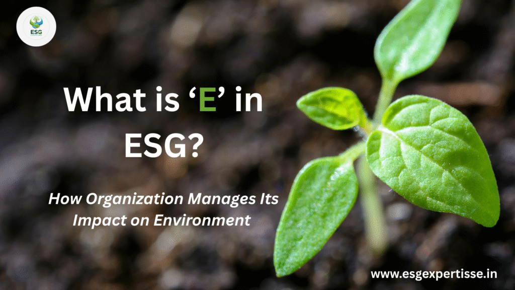 ‘E’ stands for Environmental, which focuses on how organizations impact and manage the natural environment.